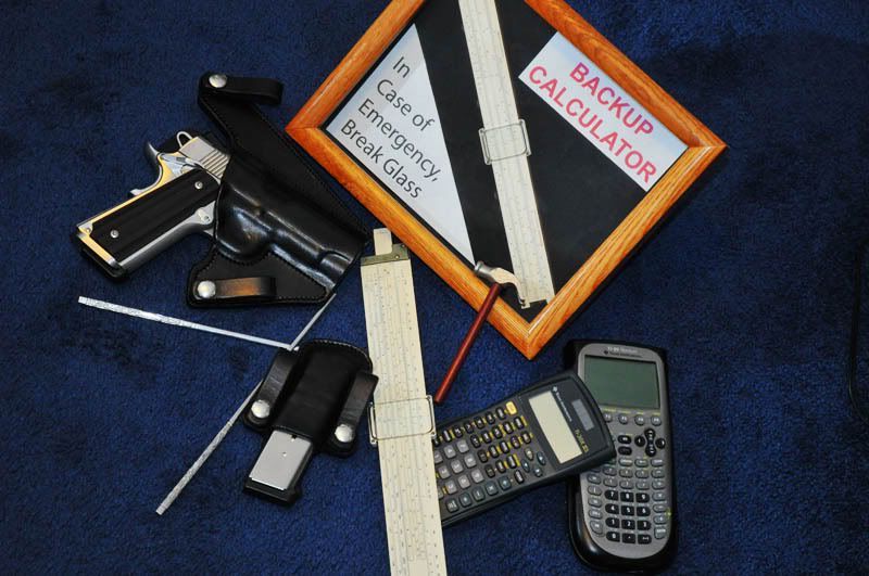 SO... you have to post a picture and in that pic it has to have... YUP, you guessed it... Fire arm, Kitchen Utensil and a Calculator