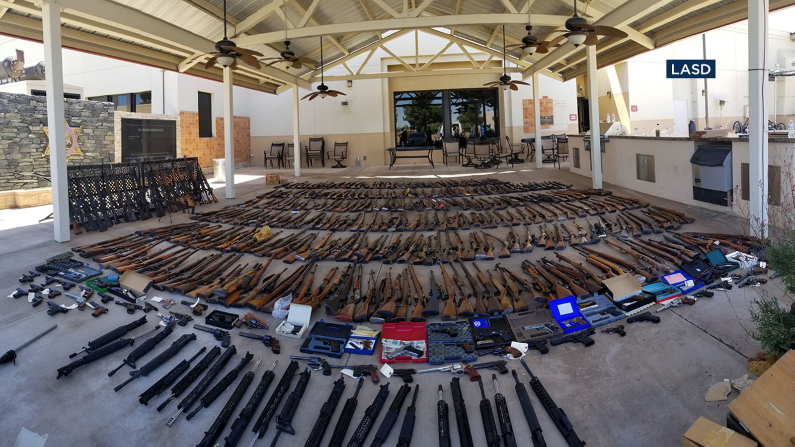 Los Angeles County sheriff's deputies and federal agents seized more than 550 firearms from a convicted felon in Agua Dulce, officials said.