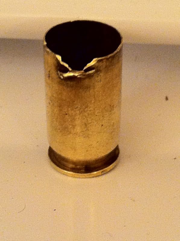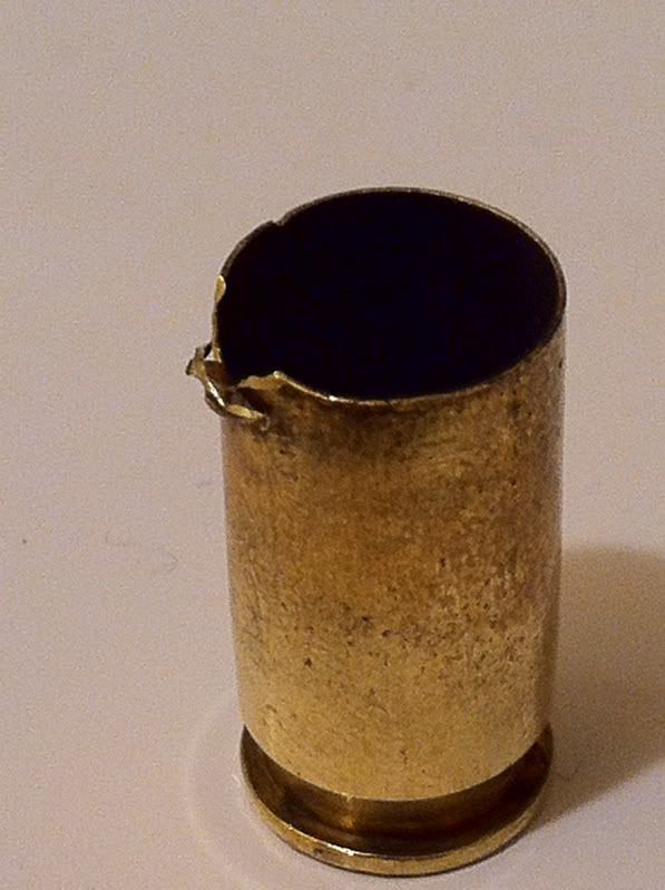 I was shooting my Springfield 1911 today, and as I was picking up my casings, I noticed one of them had cracked and peeled back at the mouth. None of the other brass I picked up looked like this. It came out of batch of WWB. Anyone know what might have caused it?