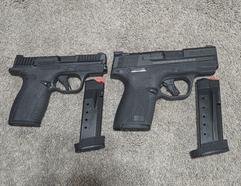 modern .380 pistols are far more Concealable and controllable than anything in the 9mm flavor. I can pocket carry a 12 round .380 that has almost no recoil when firing. Here's the standard version of the micro 9mm and micro .380 sold by S&W. Shield Plus and bodyguard 2.0. Both have a 10 round flush fit mag and extended capacity pinky rest mag. The bodyguard 2.0 is significantly smaller, lighter and controllable. Its a gun that can easily be carried while wearing any type of clothing. Sweats, t-shirt & shorts or jeans & jacket.