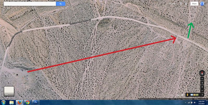 My wife and I went out to a "designated shooting area" out on BLM land in thousand palms canyon. We were shooting at the source of the green arrow in a shallow ravine shooting in a safe direction. After an hour or so, we start to hear shots directly overhead. We took cover behind my truck and ducked into the truck to honk the horn. We hopped into the truck and bailed out of there at 50mph honking the horn the whole way so whoever was shooting at us would hopefully stop. We realized that the shooters were about 600 yds away at the source of the red arrow. They had set their target at the end of the red arrow, less than 75 yards from us, directly between their firing location and us. They didn't even bother to walk another 20 yards when setting up their target to check what was downrange. They blocked their license plates from our view as we drove by. I yelled at them but I wasn't going to report them to the police for an accident, but it was still a douche move. If you guys are reading this, CHECK DOWNRANGE! You easily could of killed us. The fire was so direct I had to consider whether it was intentional or accidental. For a moment I wondered if I was going to have to fire back in self defense. Fortunately I heard the clang of the target every once in a while so I knew it was accidental. From now on, I shoot on Private property ONLY. These designated shooting areas are an accident waiting to happen. When you pile dozens of shooters into a relatively small area without any order, things get crazy! What is wrong with the hundreds of square miles of BLM land that just sits empty? In AZ they don't have problems like this. If there are shooters near you, drive a couple miles away and set up.