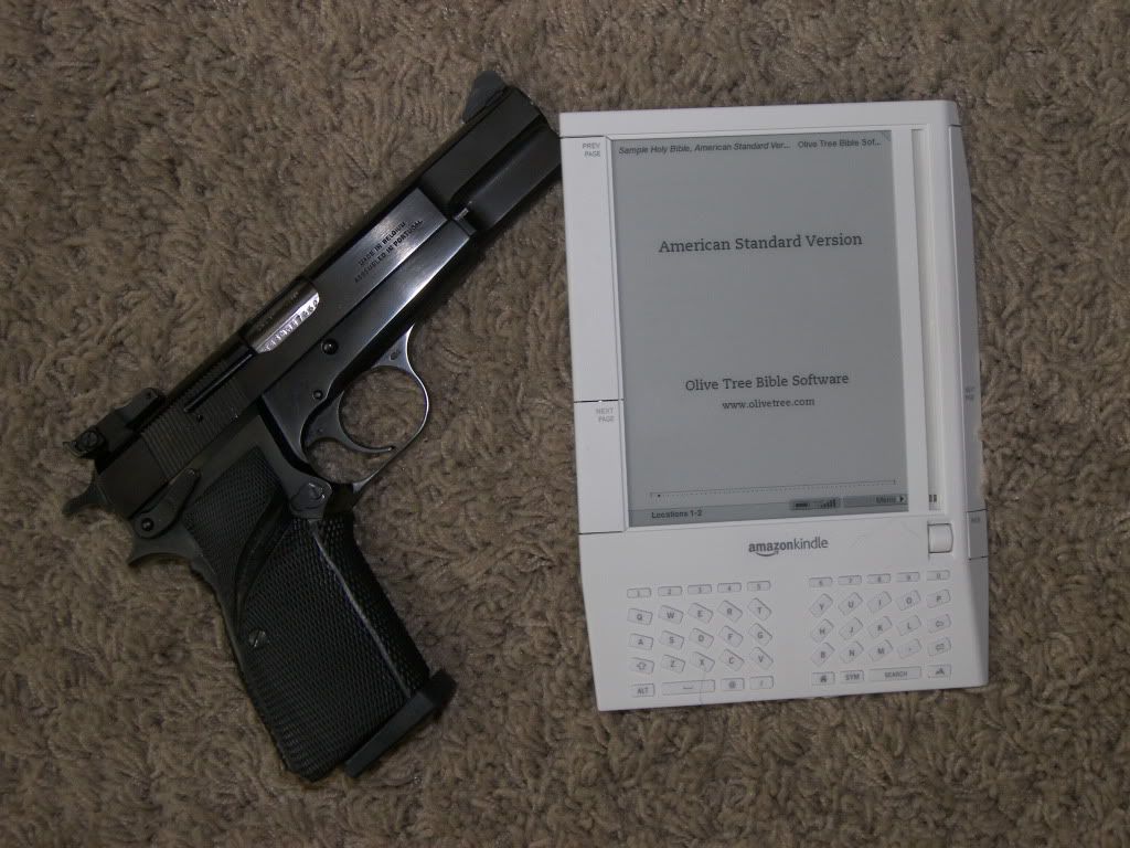 So I just got my Amazon Kindle and I have been going nuts loading books onto it and I thought I would stop and combine two of my loves (guns and books) into a photo for you guys. Enjoy!