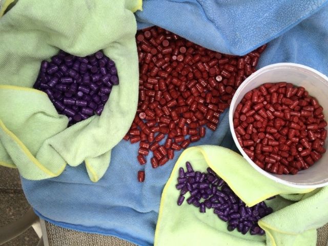 yep, my skittles boolits above are my own powder coated boolits from NOE 5 cav aluminum molds. Tonight I was working on building a new 100 pound capacity lead casting post. The lee 20 pound empties out too fast.