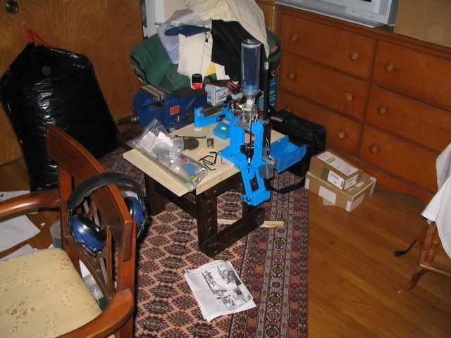 You'd be surprised how small a footprint you can set up a functional loading bench in (here's mine). I just started loading a very short while ago. Wife got me a 550 for Xmas