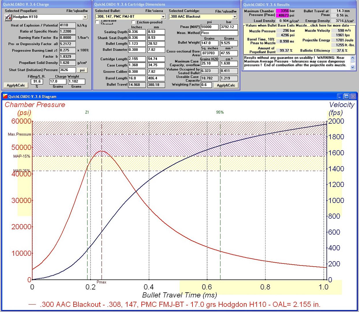 17gr of H110 I was getting 1850fps out of a 16". 18-20grs I was blowing primers.Comment