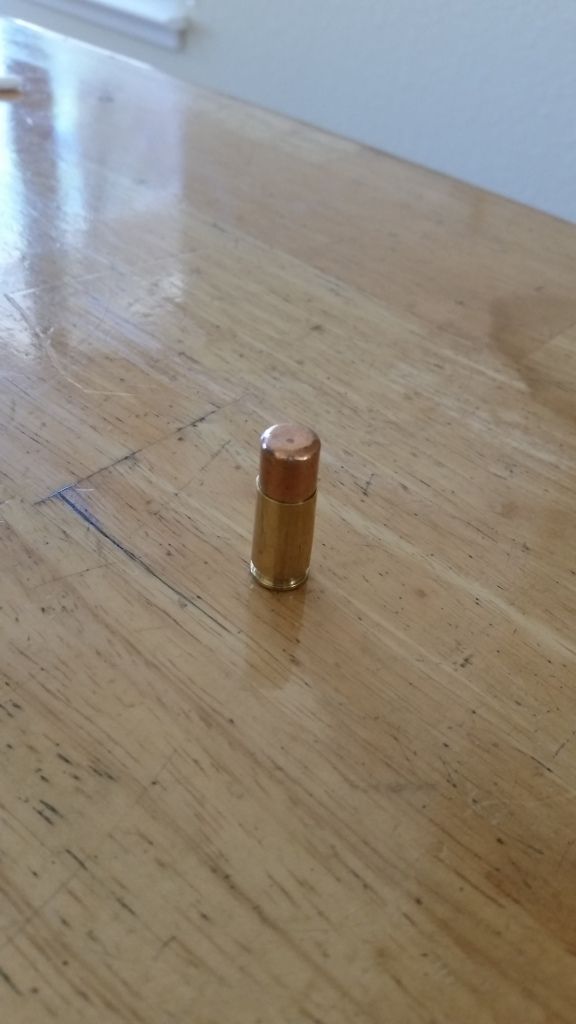 So its from Winchester White Box stock, 9mm. There is no powder in it, there is a primer, but it appears there is no "lead" and only the copper jacket was pressed into the brass.