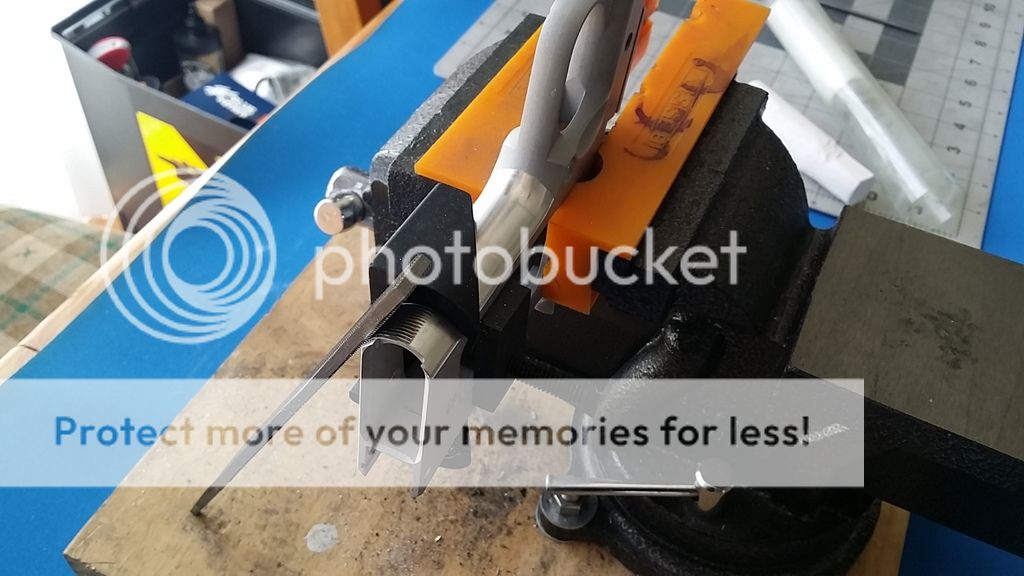After removing the jig, I used Dykem on the front strap to see the lines I'm cutting.
