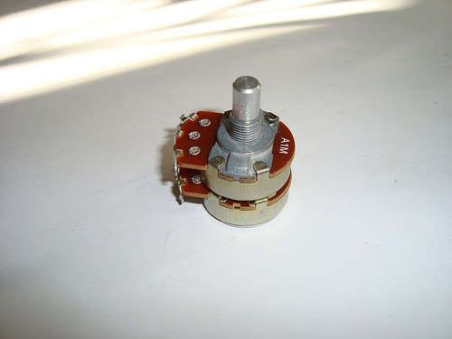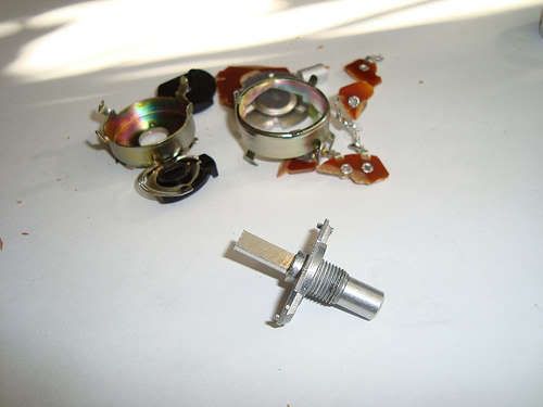 The project began. Make my own. It can't be that hard, so like all good ideas, I started at Radio Shack, where I bought a Potentiometer and a simple knob. Disassembled the potentiometer to the body and shaft that was needed (note this a pic of the second one I'm trying to simplify the process, not the one I started with (future pics):