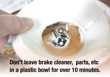 Okay, a few beers go by... and I forgot about some parts soaking in brake cleaner... IN A PLASTIC BOWL. (very thin plastic).