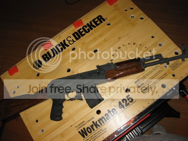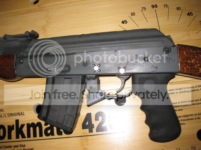 Just finished applying Alumahyde II to the Bulgarian AK I assembled with the guidance of Toes. My Brownells shipment arrived yesterday so I was all set for today. I watched the Brownells video clips on youtube and did exactly as they said. Everything went well except that even after 2.5 cans of brake cleaner I must have had some kind of residue left behind on the side on the receiver. The paint on that part cracked and generally looked moist and miserable. Oh well, I'll put a sticker or something on it to disguise. Then following the advice from this forum, I popped it in the oven for an hour at 250 degrees F. One mishap was the receiver which I had put inside a disposable baking tray flipped onto its side. Other that that, I am waiting anxiously see the the end result.