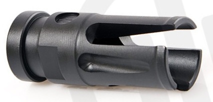 I would think you would want the bottom 1/3 of 3 prong facing the bottom of rifle towards the ground to reduce dust signature if your an operator, if your not then any rotational position would suffice.