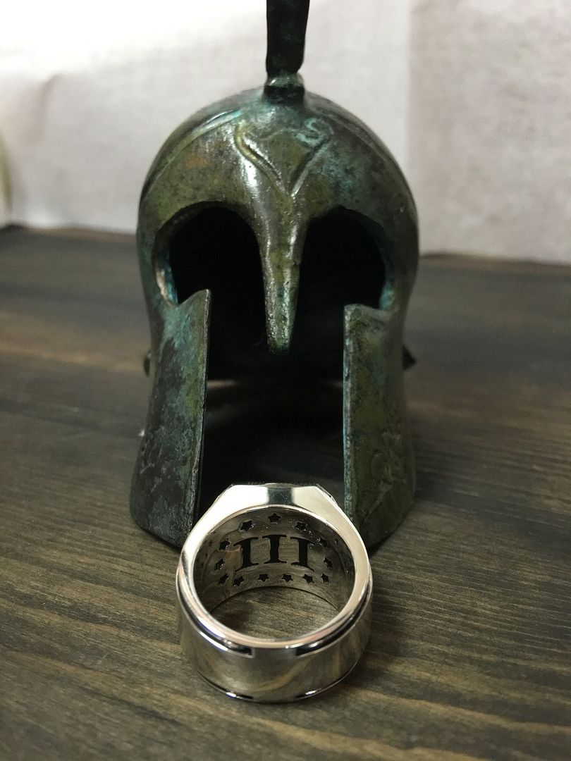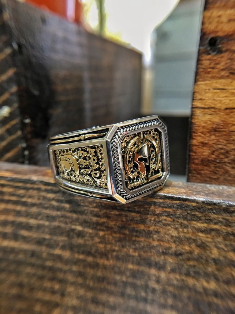 This Ring has taken me a year to develop in design and to manufacture. It is manufactured individually to each owner's size. It is fabricated in nickel free sterling silver. Make no mistake, it is a hefty piece and weighs approximately 1 ounce.