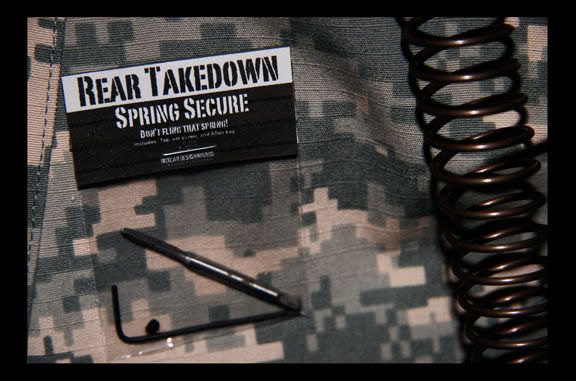 This kit will prevent the spring flyaway that happens when you remove the butt stock without paying attention. It is also a necessity when building an AR pistol. Includes a tap, set screw, instructions and an allen key. All you will need is some tap oil, a tap wrench and some snips to trim your present spring 1/8" shorter. Extra set screws can be added for 50 cents each. Price is 5.99 shipped (Calguns-USA only). Money orders preferred but will do discreet paypal (add 4 percent), listed as "tap and key set" only. IM or email me. This is a great mod to do, no more hands and knee searches after it flies out...