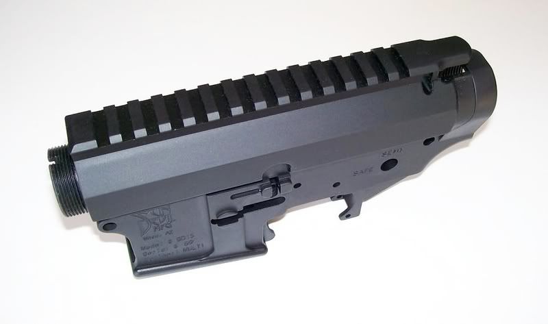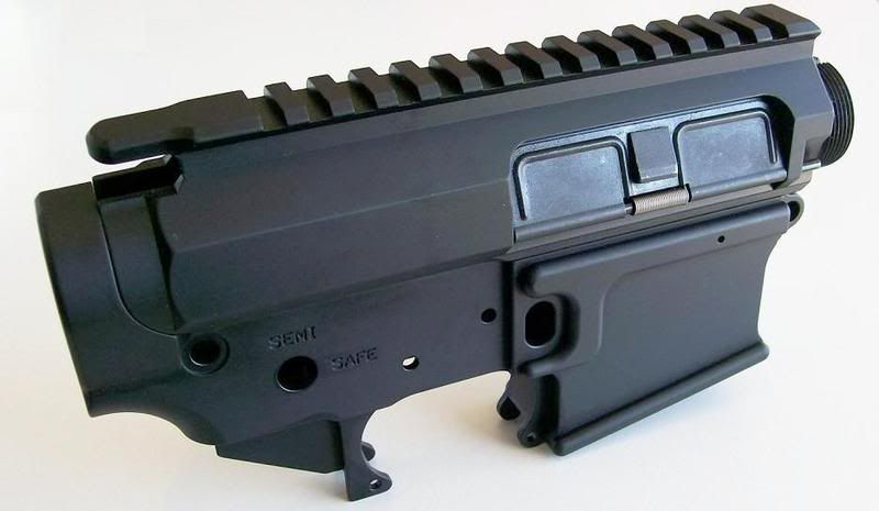 Sun Devil Mfg stripped billet lower receiver and billet upper receiver with port door assembly installed.