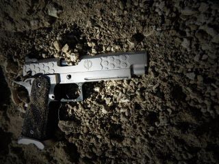 It groups super tight, and we opened up the tolerances so that it operate under the harshest condition... On top of that we coated the entire weapon in Nickel Boron so that it never needs lube. We omitted the guide rod so that it can be taken down by hand in the field. This girl is ready for war and comes top coated in your choice of Burnt Bronze, Combat Grey, Black, Magpul FDE, or OD Green. Comes with a hand made holster from Off The Grid Concepts, 3 tuned mags and chance to be the coolest kid on the block.
