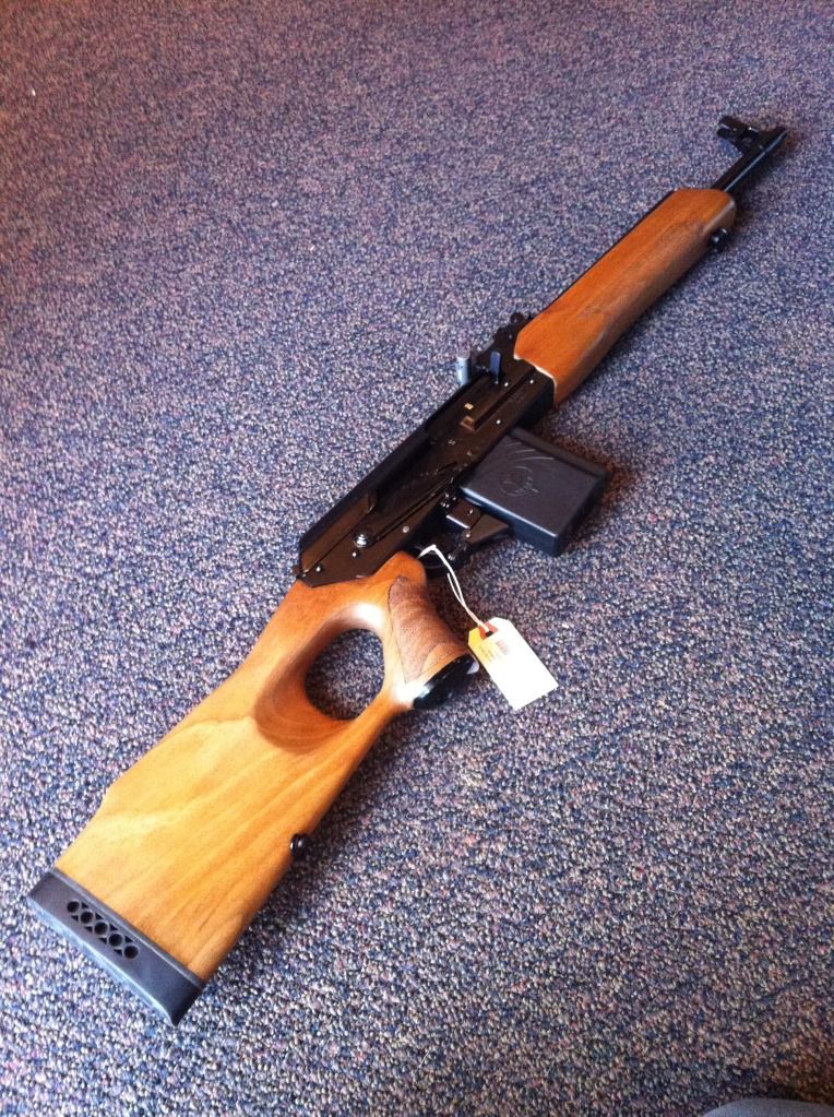 Vepr in .308 Win caliber features a look similar to an AK, with a thumbhole buttstock and walnut foregrip. The hammer forged, chrome lined barrel is 16” in length, and a scope rail is riveted to the side of the receiver for easy mounting of a side scope.