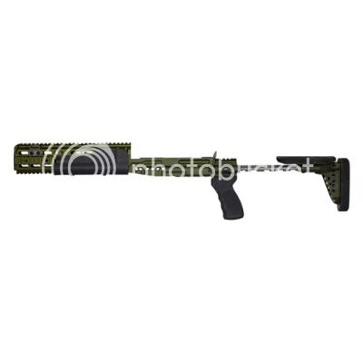 The chassis includes five mil-spec 1913 Picatinny rails, three ambidextrous sling mounts, a removable Kydex forend with a built in palm swell, and a soft one inch recoil pad.