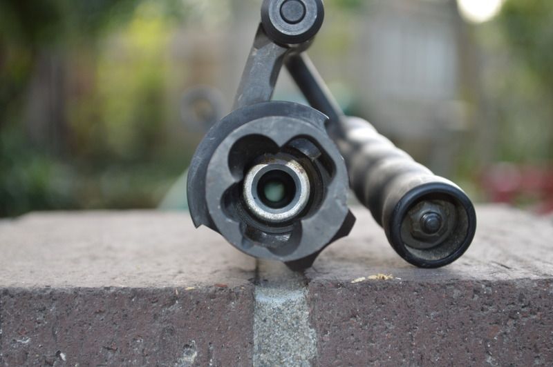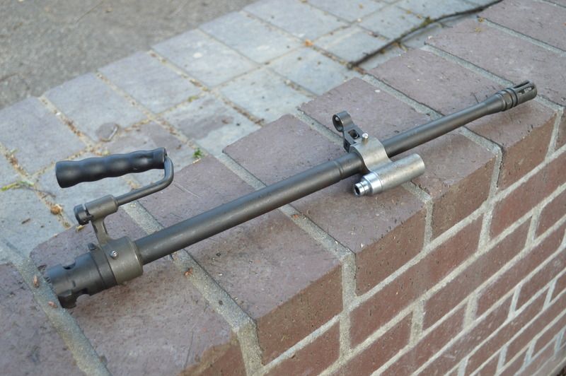 I picked this up to see if I could adapt the front sight to something else, deciding to go a different direction. I pulled the flash hider, the barrel easily passes the bullet test. Bright, sharp rifling, looks to be hard chrome lined. $150 OBO + shipping from 95608 for the barrel, front sight, handle, gas block, flash hider.