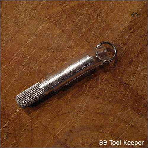 The BB Tool Keeper is hand made 1 by 1 with great toil & precision by me. Your BB Tool (not included) will fit snug in the keeper, but still allow it to be pulled free – like a knife in a sheath – when you need it. It has a ring at one end so you can fit it onto a lanyard or keychain or carabineer or retractable key ring or whatever. And it looks pretty cool also. Yeah, I know you could have made this yourself, and I guess nothing can stop you, but as a jeweler once told me, “hey, but you didn’t.. I did”.