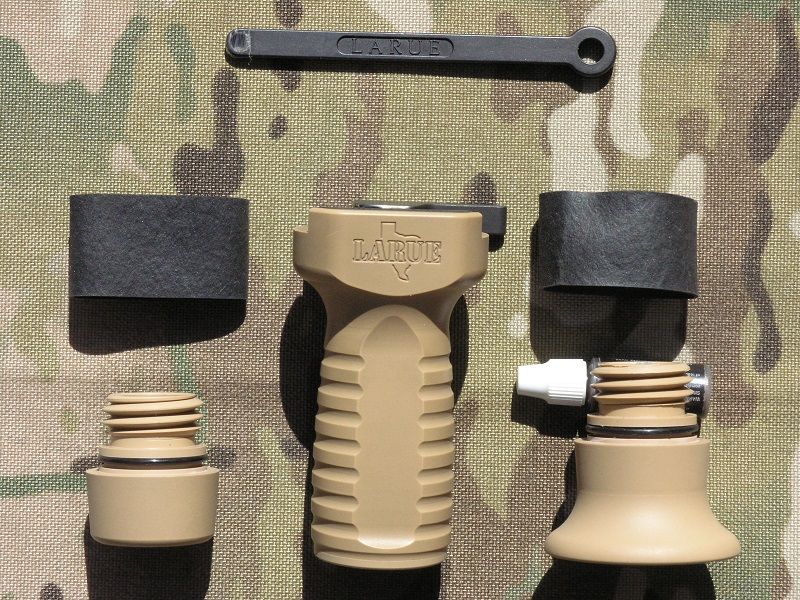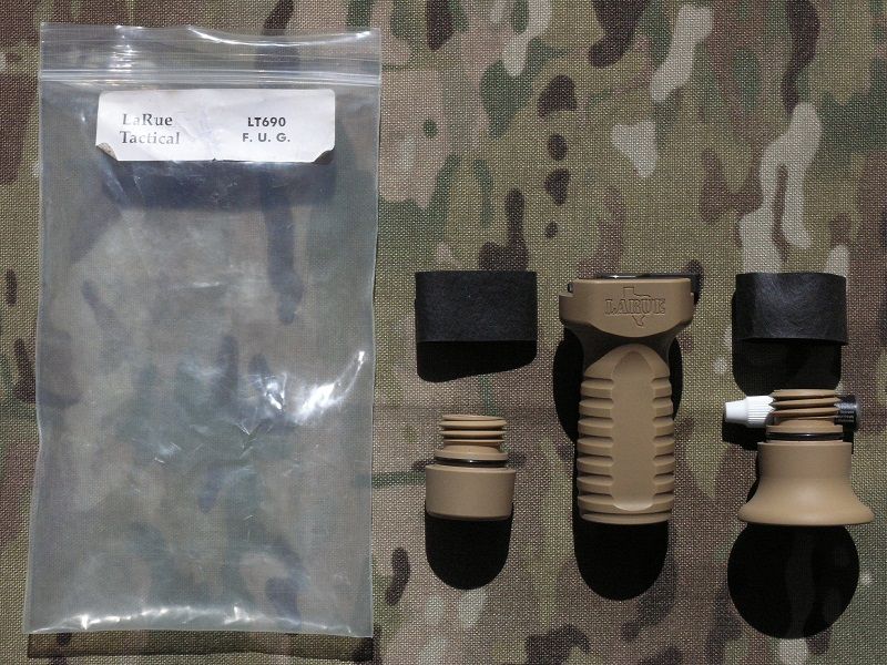 I have a LNIB Tan Larue F.U.G. (Forward Universal Grip) for sale. Complete with all accessories (all three [3] End Caps, Rubber Bands, QD Tension Adjustment Wrench, and a small bottle of Machinegun Oil. For the uninitiated, the three different End Caps allow the User to set-up the F.U.G. as a Stubby, Medium, or Long grip. ***SOLD FTF***