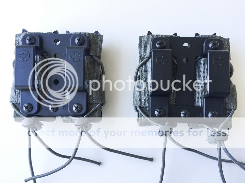 Lightly used, in excellent condition. Each set contains two HSGI pistol TACOs mounted on a Raven Concealment Moduloader frame with 1.5" belt loops. This is a very versitile system which allows carrying of multiple types of magazines from singlestack to doublestack. This is great for those that like to shoot multiple guns without having to constantly change out your magazine pouches.