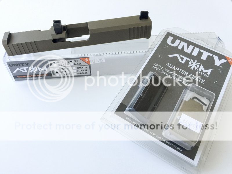 Logistics:First up for sale is an RMR ready Unity Tactical Atom Slide in flat dark earth PVD finish with Trijicon RMR mounting plate. For Glock 17 9mm.
