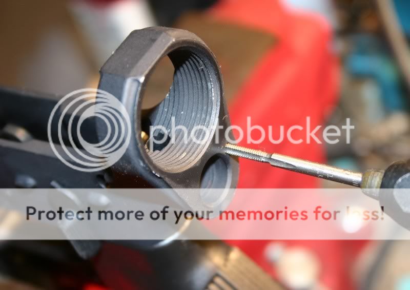 It uses a set screw to hold in the rear take down pin detent instead of a plate in front of the buffer tube or stock.