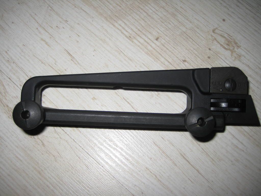 This sight/carry handle came off my Stag Model 1 rifle, I am looking at getting a flip up rear sight so I am selling this one. NO visual signs of wear, it isn't new but it looks the part. This Carry handle with 1/2 minute sights works with all A3 flattops. Any questions please pm, first I'll take it post gets it. I only have this for sale here on the site, so purchase with confidence.