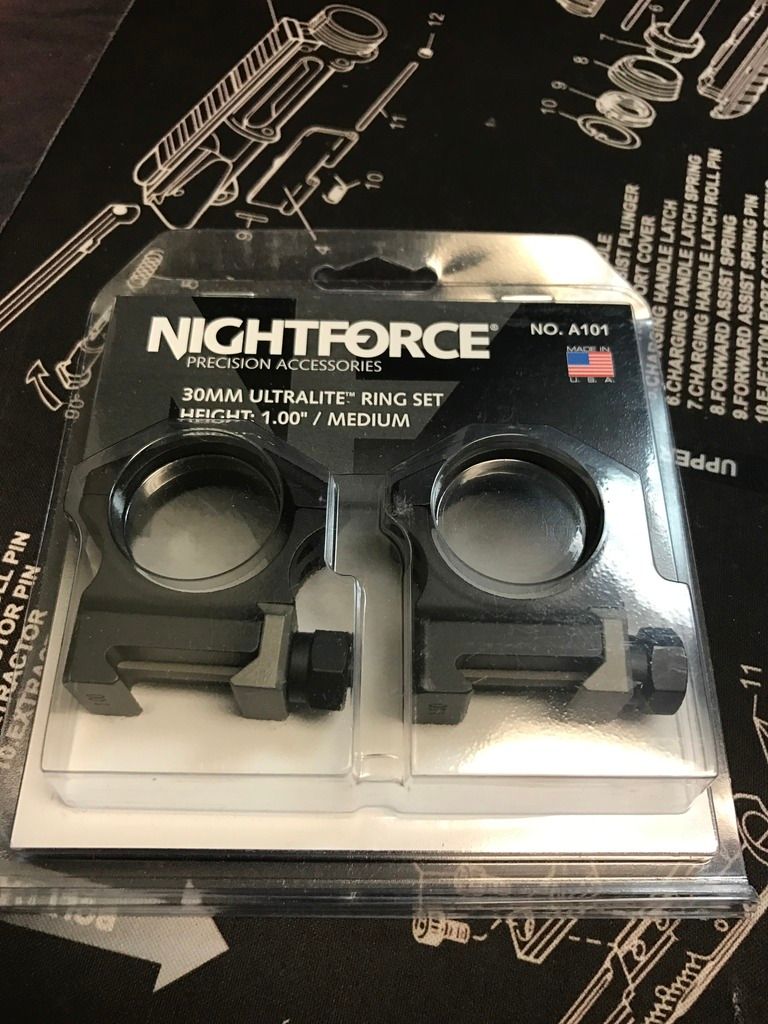Sold - Nightforce 30mm Ultralight medium height rings 1.00" height