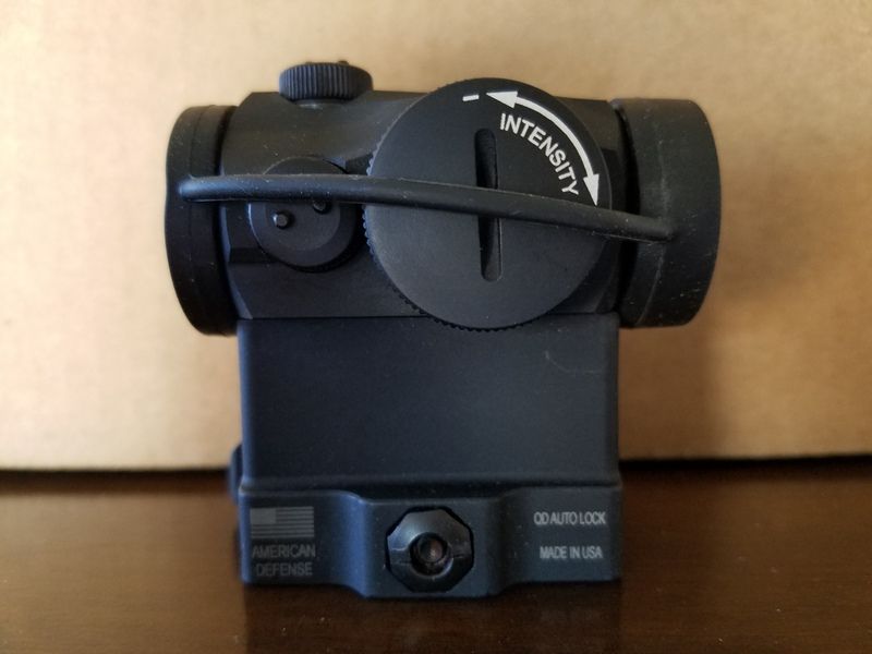 As the title states, up for sale is my Aimpoint H1 red dot with an American Defense 1\3 co-witness QD mount. Both sight and mount are in excellent condition and have only been on my AR for about 500-600 rounds. I replaced the Aimpoint bikini cover with a Primary Arms one due to the band ripping apart. Other than that and it being a bit dusty (as seen in the pics), everything is in tip-top shape. Decided that I wanted to try something new. The sight will have its original box with tool and user manual. Willing to ship.