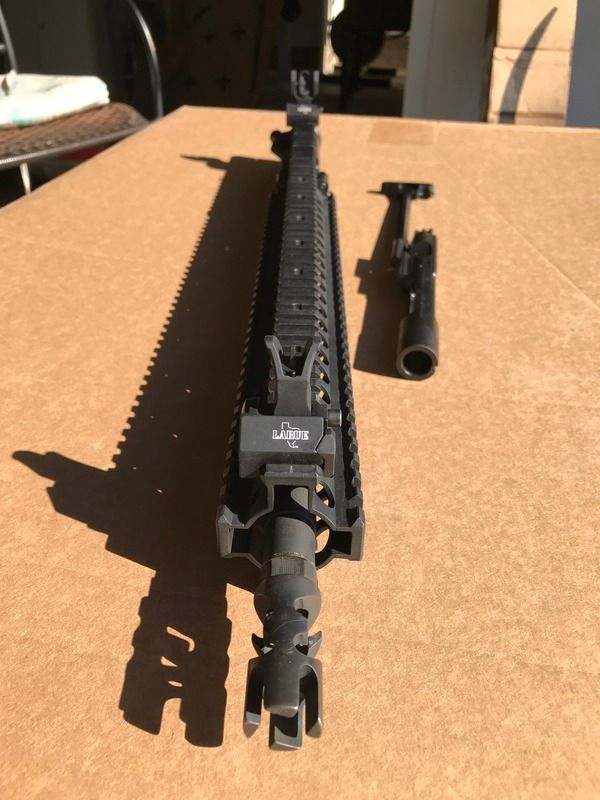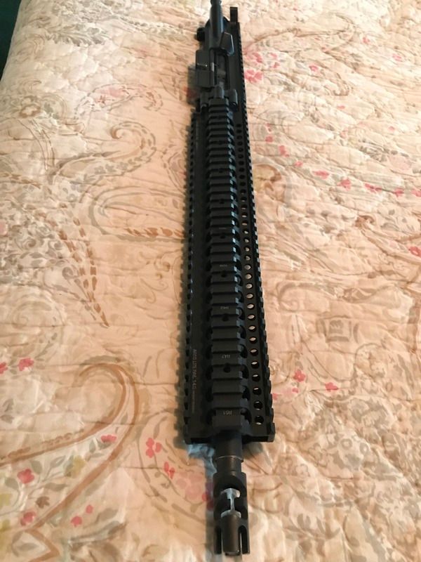 I have for sale my LMT/Daniel Defense upper. The receiver and barrel are factory LMT (Lewis Machine and Tool). The rail is a 14" Daniel Defense Lite Rail. Also has a FSC556 comp. Included is a like new (400rd fired) BCM BCG and Colt charging handle. Topping the upper is a like new set of Troy flip up sights with the LaRue logo.