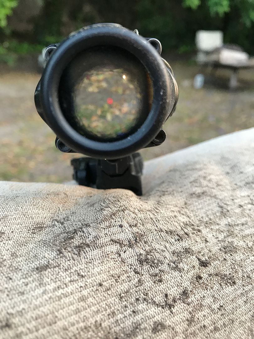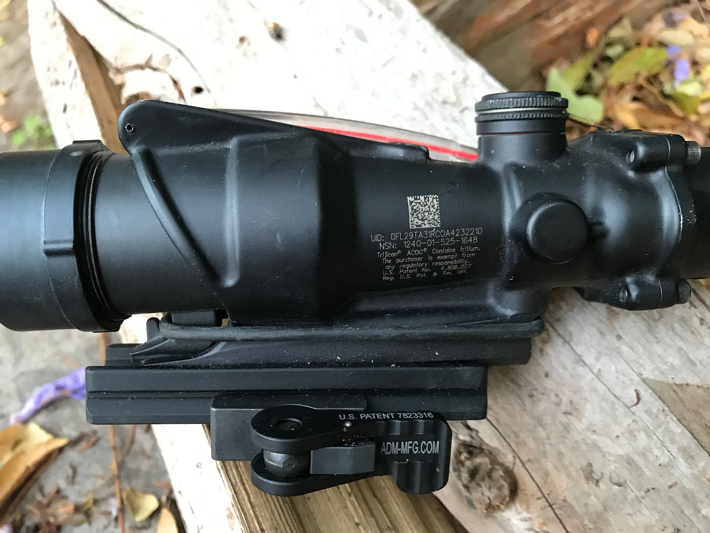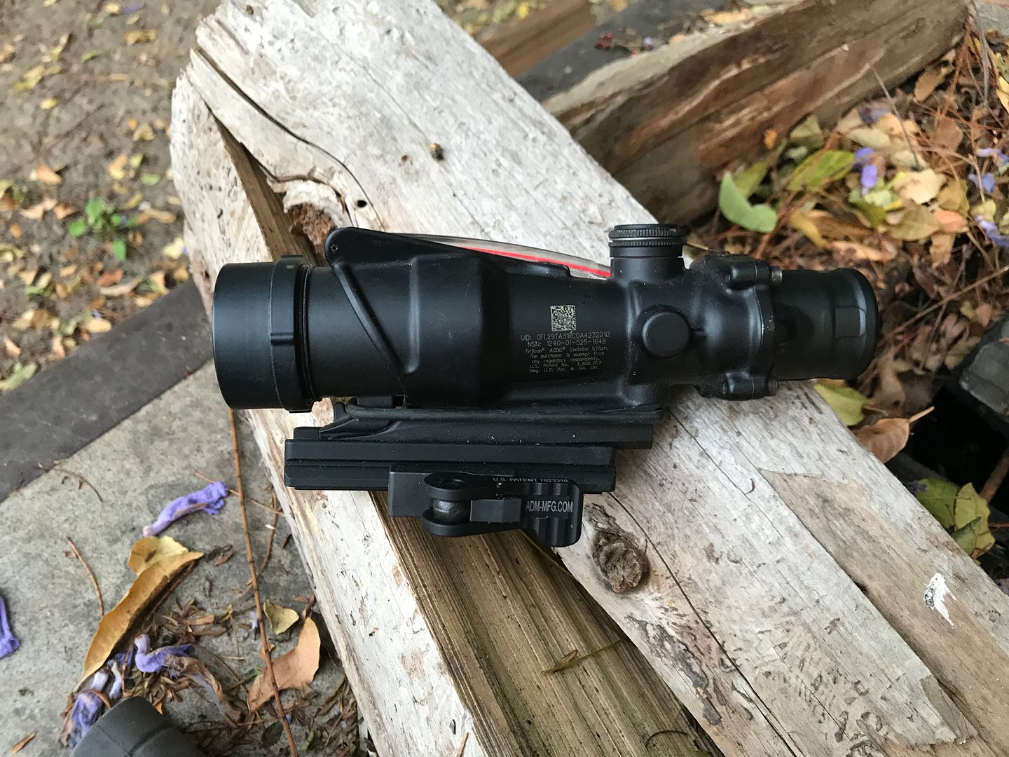 Here we have a Trijicon TA 31 4 x 32 ACOG that I bought off a fellow Calgunner a year or so ago. I bought it for a build I was planning but still haven't gotten around to it so it's just been sitting in the safe. The lamp is SUPER bright in the daytime, still visible at night but slightly dim in the dark (compared to new) That's pretty much per the norm as when I dated it, it's (as I recall) 7 years old. The glass is perfect and REALLY is nice to look through. The quality of Trijicon optics is amazing. I tried to get a pic of the reticle or showing the brightness of lamp but it's really difficult to capture with a camera phone. But you can see that it's bright and I included a pic of which reticle it has.