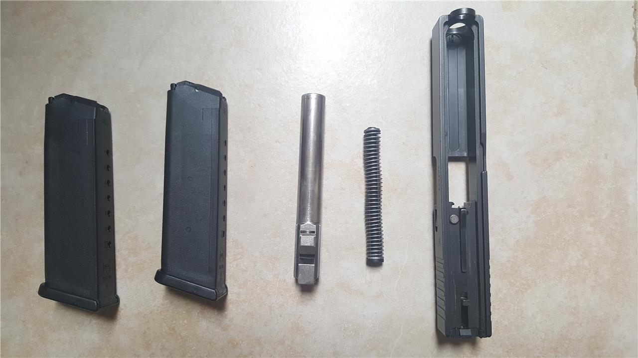Glock 22 Complete Factory Slide. Excellent used condition, probably around 300 rounds. I had the barrel polished. Matching serial number. Comes with two like new original Glock magazines. SPF TO BITEME2016