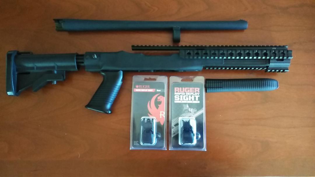 Used but great condition Tapco 10/22 stock. Only have the straight receiver extension (Tapco calls it straight but its slightly angled), can't locate actual angled extension. Was reprofiled to fit the UTG rail and a .920 bull barrel. UTG rail does have a little wear. I did bridge the gap where the rear 10/22 sight is located with a section of rail, mainly for aesthetics. Will also come with rail cover for the forend of the Tapco. $80