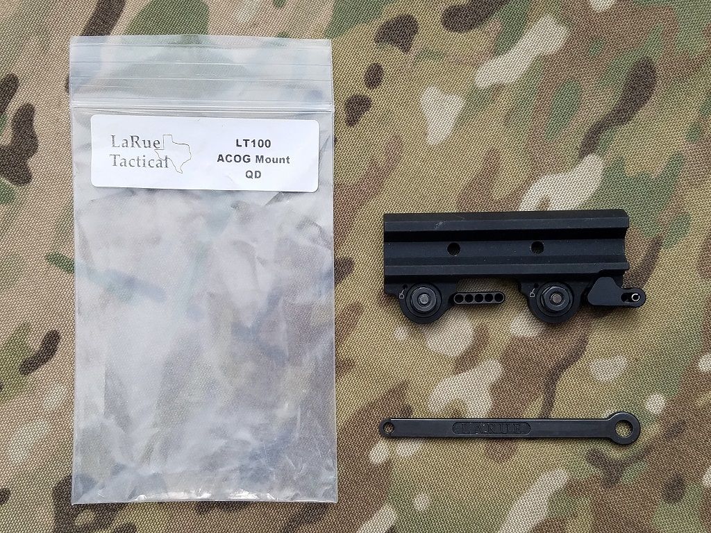 ***SOLD, SHIPPED, RECEIVED*** I have a used (Larue) LT100 "full-size" ACOG QD Mount for sale. Functionally, it's in excellent condition, EXCEPT that I broke the "locking" mechanism on the Rear (2nd) QD Lever because I forgot to slide the Lever to the un-locked position before swinging the Lever to the "Open" position to remove the ACOG from the rifle it was mounted on. Yeah, dumbass move on my part.