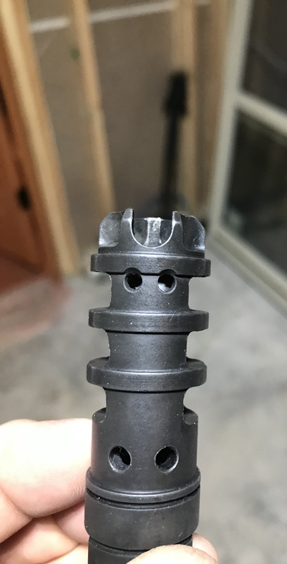 This brake is well used but perfectly functional. I used it for several thousand round in a PCC rifle. No crush washer. $45 shipped. Paypal FF or USPS MO.