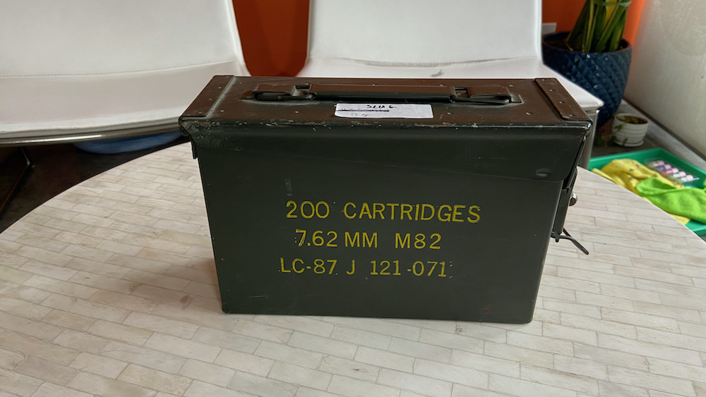 1. a "well-loved" 30 cal ammo can, with Lake City plant markings.