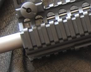 The barrel is a M4 fluted barrel not sure of the maker. It was built by locally by a guy named Robert of discount gun mart. It's the vis-2a Ext mid length 10" with foward assist shell deflector. It has a custom gas block made from the factory a2 front sight.