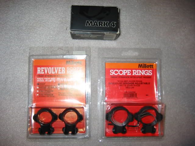 4) Leupold Mark 4 30mm Dual Dovetail, matte, high rings, NIB. This part is currently listed in the Leupold catalog as #49958. Asking $20.
