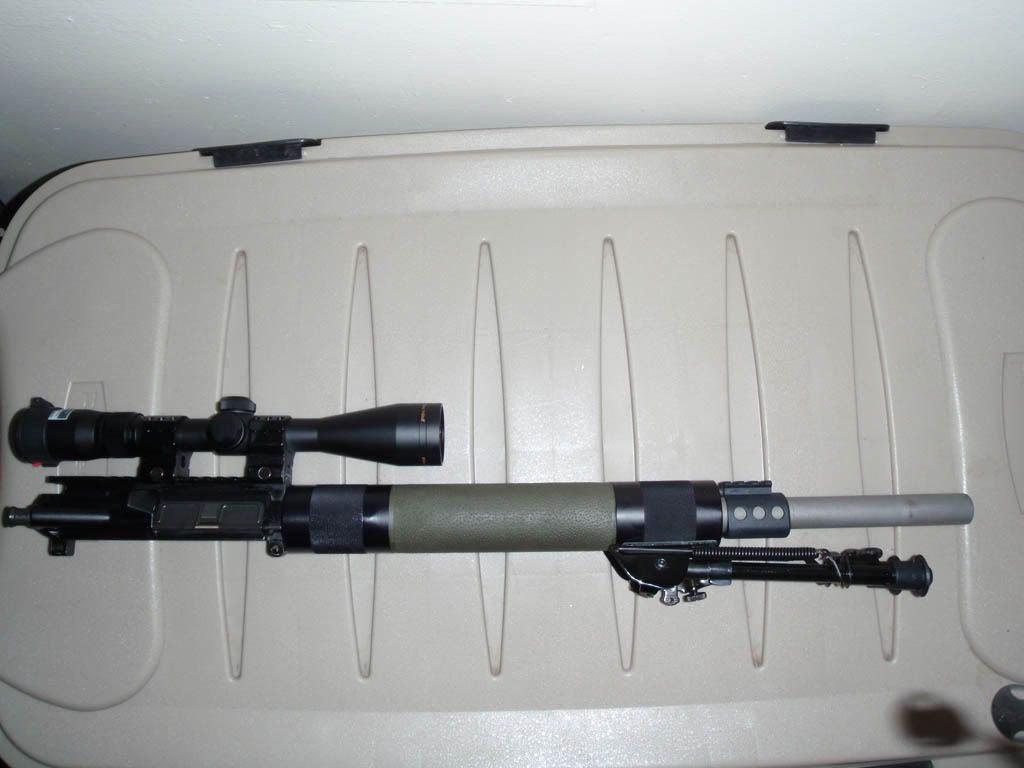 Next up is a RRA 20" Varmit upper with an OD Green Hogue Free-float Foregrip thats been sitting in the safe for sometime now. I got this used from a fellow Calgunner, (approximate 500rds from him) and I've put 300rds thru it myself. I've taken great care of it, cleaning it after ever trip to the range. There are a couple of marks on the barrel (towards the muzzle) from the original owner. It comes just as is in the pic... 3-9 x 40 Nikon Prostaff w/BDC reticle, 1" Burris Extreme Tactical Rings and bipod.