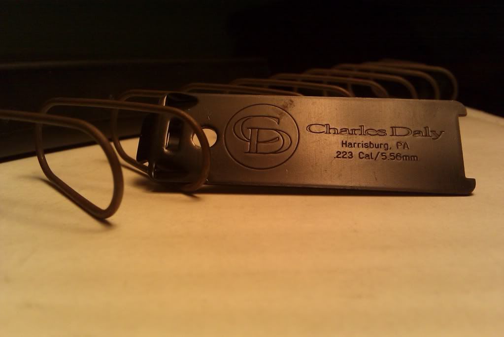 My buddy's brother picked up these Charles Daly AR-15 magazines in Vegas. Brand new, semi-gloss black, stainless steel, teflon-coated (low-friction) surfaces, no-tilt follower, 30-round capacity. Decided I'd really rather have windowed P-Mags.