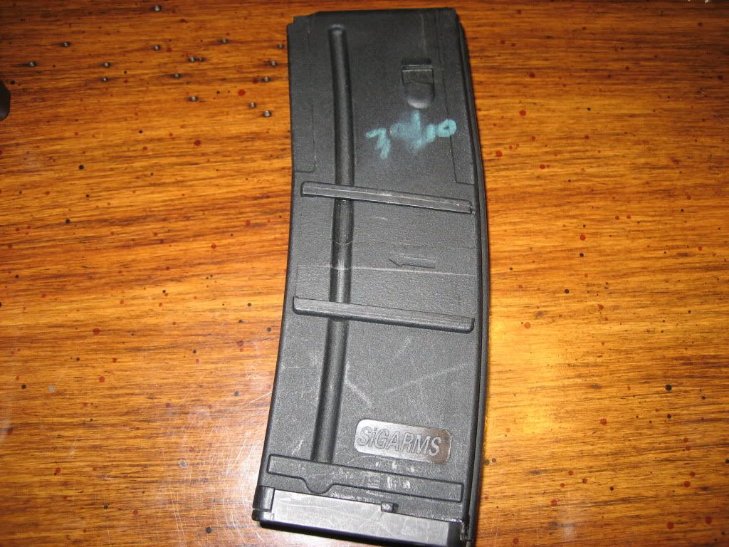 First up is a Sig 556 Magazine. It is a 10/30 with the floorplate epoxied on, it fits perfectly fine in my Aero lower and drops freely.