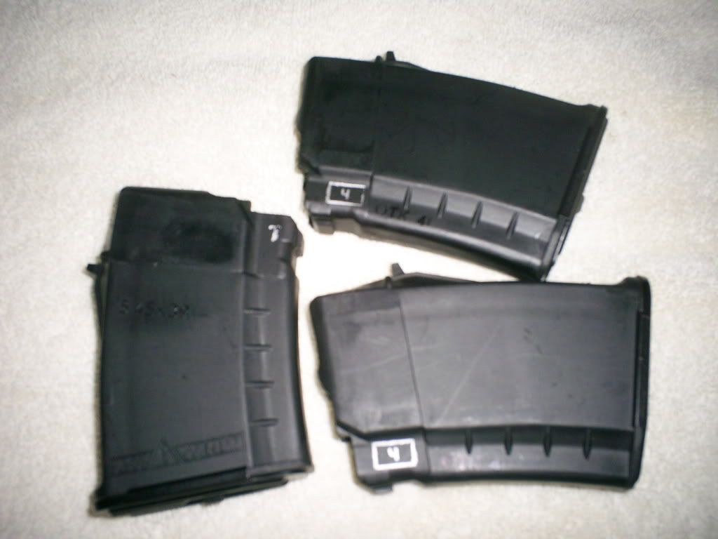 Up for grabs are a few (I have more than pictured) genuine Russian Izhmash TRUE BLACK 10rd AK-74/5.45x39mm mags. These are new, fresh out of the wrapper and straight from Russia - I'll be listing a few other Russian selections as well in the near future when I can get more pics up. Izhmash logo is present on the bottom of the mags and "5.45x39" near the top, as seen in pics below. Plenty of fresh silver and purple ink proof marks on these as pictured. Like new with only storage/handling marks from the trip over - pristine condition, you won't be disappointed.