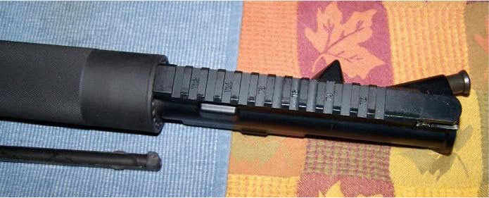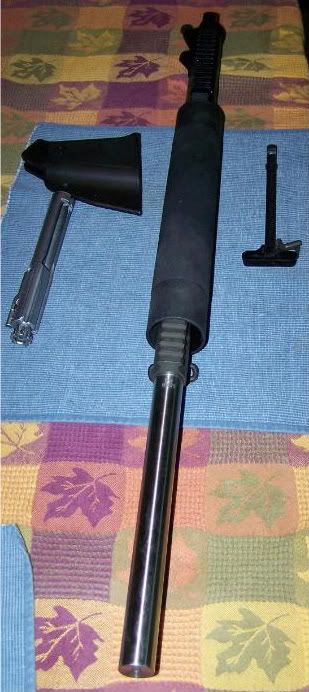 24" varmint upper with a stainless steel ER Shaw barrel. It is a flat-top upper. Barrel is chambered in .223 with a 1:9 twist, semi crowned. Free float hand guard with front rail. I have put 500-600 rounds through it, accurate and easy to shoot. I don't know how many rounds went through it before I bought it. Very good condition, a couple of small nicks in finish, nothing substantial.