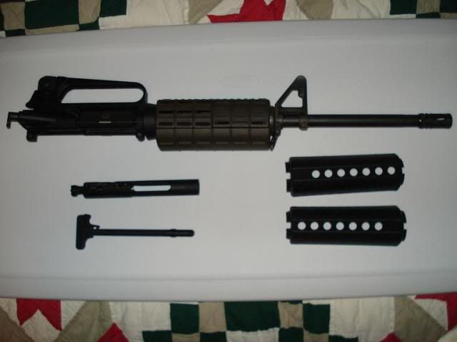 Up for sale is a Armalite Carbine Length 1x9 A2 Complete Upper Receiver. It has about 700 rounds down the pipe. It comes with a brand NEW Stag Arms BCG and charging handle. You have the option of a regular handguard, or a Tapco OD Green INTRAFUSE handguard or both. It has a USMC rear site. I'm asking $400. If you have any questions feel free to ask.