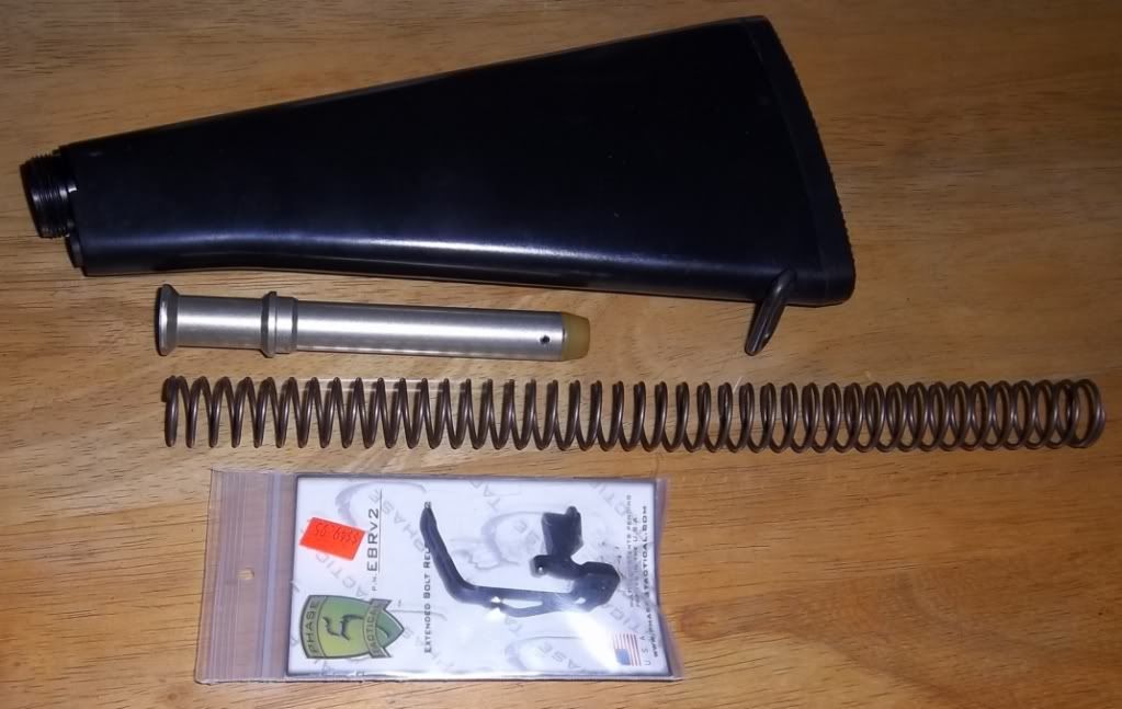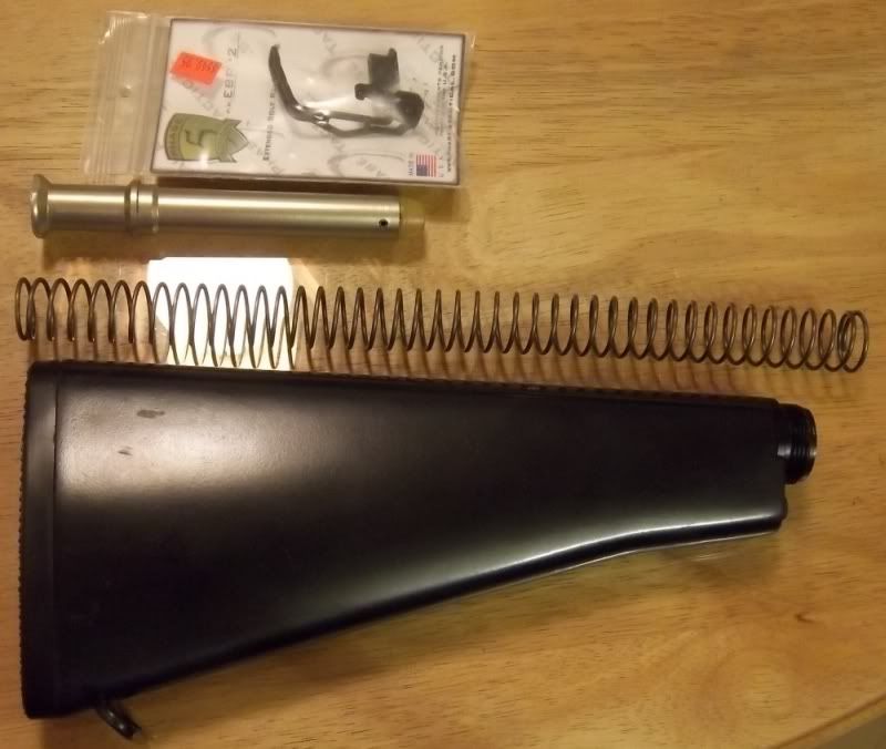 The A2 buttstock, SPF, buffer and tube W/spring has been painted with hi temp. and baked. Has some small blemishes that are highlighted in the second pic, but still looks good under normal lighting.