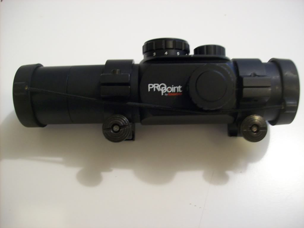 6. Tasco Pro Point red dot sight. Works good, just put a brand new battery in it. Includes rings. $35.