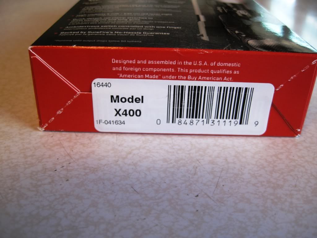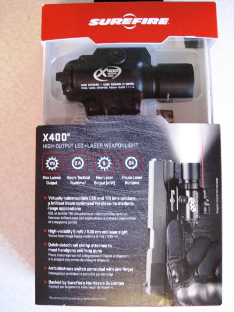 BNIB X400 (170 lumen model). Removed from box for inspection and put back in box. $390 shipped and insured to your door or trade for Comp M3(CONUSA). Personal Check, money order or discreet *aypal as gift for no fees...i dont want them to make one cent off of me or anyone else...Surefire verbiage below...PM me with any questions.