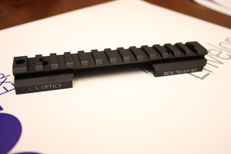 I am selling a pretty much new only mounted on gun U.S. Optics rail.I resorted to a MARS rail on my short action Remington 700 instead. If you guys are interested I will let it go for 120 lowered to 100 plus paypal fees, plus shipping for 5 bucks. I'm in Victorville at night and Rancho Cucamonga by day. PM me if you are interested, in my opinion its the best rail for the 700, just wanted one that was NV adaptable.