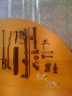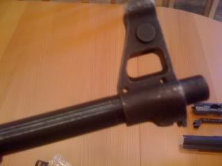 The gas block and front sight are pressed on, but not pinned. In the case of the gas block it needs to be moved a little bit forward to match up with the gas port hole. The kit is in very good condition w/ a couple of minor dings that I made sure to take pictures of; some galling on top of the barrel (will no be noticible once pressed back into the trunnion) and some scrtaches on the front trunnion where the previous owner sctached up the front trunnion area near the serial number. Serial number is still readable and will not be noticiable once the kit is parkarized, painted, or blued.